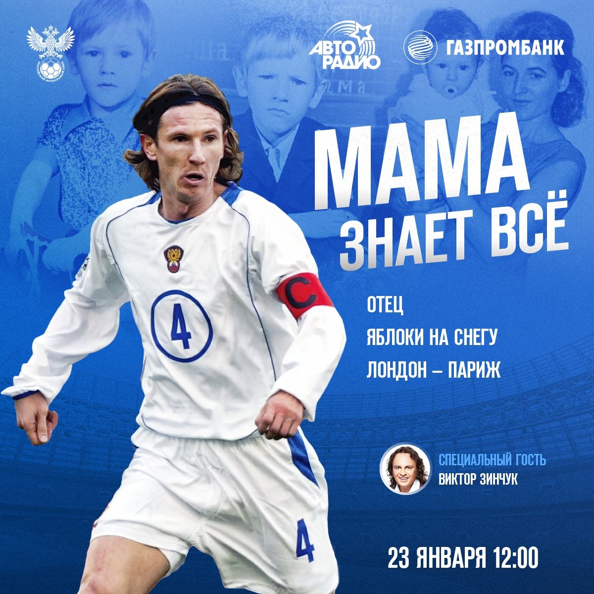 Российский футбольный союз (РФС) и Газпромбанк продолжают работать над шоу «Мама знает всё» на «Авторадио». Суть программы в том, что мамы игроков сборной России по футболу рассказывают о карьерном пути своих сыновей и открывают секреты воспитания чемпионов.