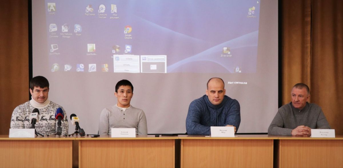 В пресс-конференции приняли участие Алексей и Виталий, а также тренеры - Владимир Кутчер и Равиль Галеев.