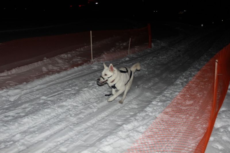 «Ночной сумасшедший заезд». Гонки на собаках в барнаульском квартале «Дружный». Фото