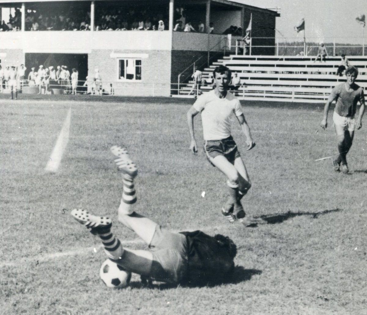 Драматичен футбол на олимпиадах. Ограниченность соревнований во времени не позволяет увеличить число команд, участвующих в футбольном турнире. Отбор на зонах проходит чрезвычайно жесткий, и далеко не всегда лидерам удается доказать свое преимущество. Вот и в Павловск не получили пропуска футболисты Ключевского, Михайловского районов, по несколько раз в прошлом становившиеся чемпионами. Четверку же финалистов составили команды Родинского, Поспелихинского, Ребрихинского и Павловского районов.