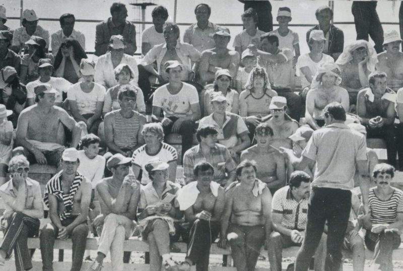 Из игровых видов спорта по эмоциональному накалу, остроте и драматизму борьбы, безусловно, выделялся мужской волейбольный турнир. Восемь команд были разбиты на две подгруппы. Волейболисты, как и городошники, раньше всех начинали свои поединки и позже всех заканчивали. Иные матчи, как например, ребрихинцев со смоленцами, более двух с половиной часов тянулись. Этот матч определял финалиста - в пятой, последней, партии, смоленцы склонили чашу весов в свою сторону.