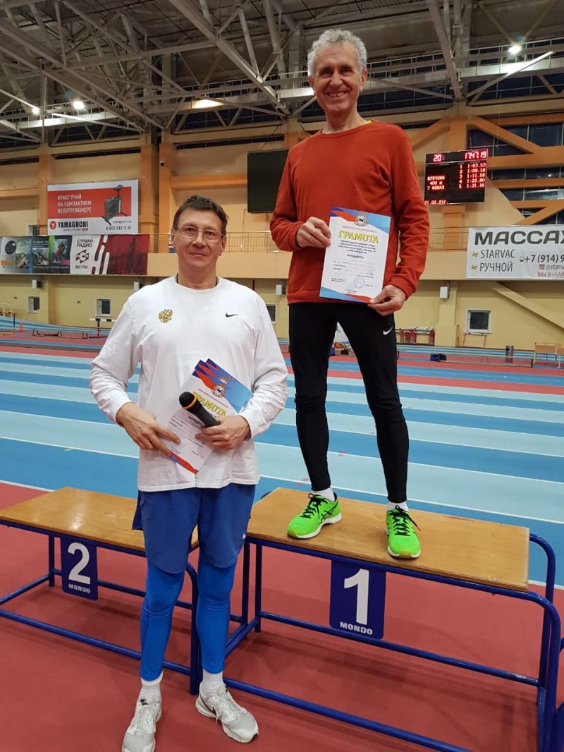 42-летний Михаил Виноградов выиграл в своей возрастной группе 40−44 лет забеги на 1500 метров (4.11,64) и 3000 метров (9.13,21), а 60-летний Вячеслав Дадыкин первенствовал на дистанциях 60 метров (8,20 сек) и 200 метров (26,78 сек) в возрастной группе 60−64 лет.