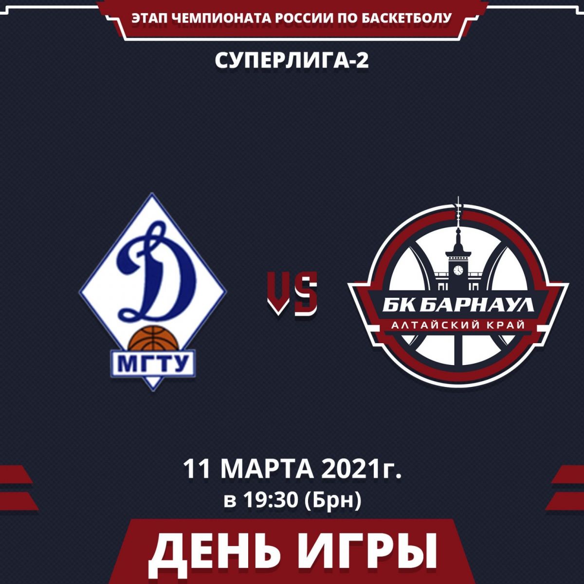 Видеотрансляция. 11 марта. Чемпионат России. Мужчины. Суперлига-2. Второй раунд. «Динамо-МГТУ» (Майкоп) - БК «Барнаул»