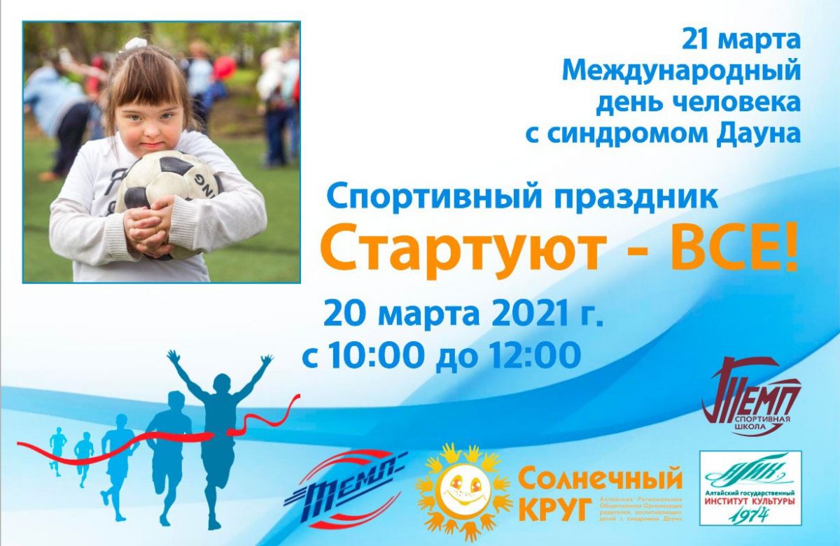 20 марта в спорткомплексе «Темп» пройдёт спортивный праздник «Стартуют все!», приуроченный к Международному дню человека с синдромом Дауна