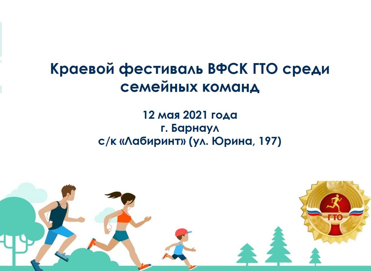 12 мая 2021 года на барнаульском стадионе «Лабиринт» (ул. Юрина, 197) состоится краевой фестиваль ВФСК ГТО среди семейных команд.