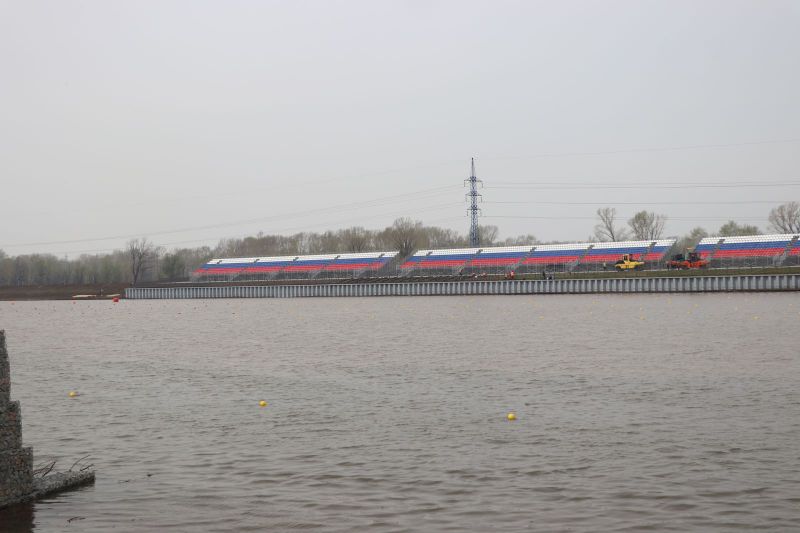 Уложена тротуарная плитка на территории, где будет располагаться «деревня спортсменов». Там уже стоят конструкции, на которых команды будут держать свои лодки. Здесь же встанут 50 шатров для национальных федераций, спортсмены которых приедут в Барнаул на Кубок мира.