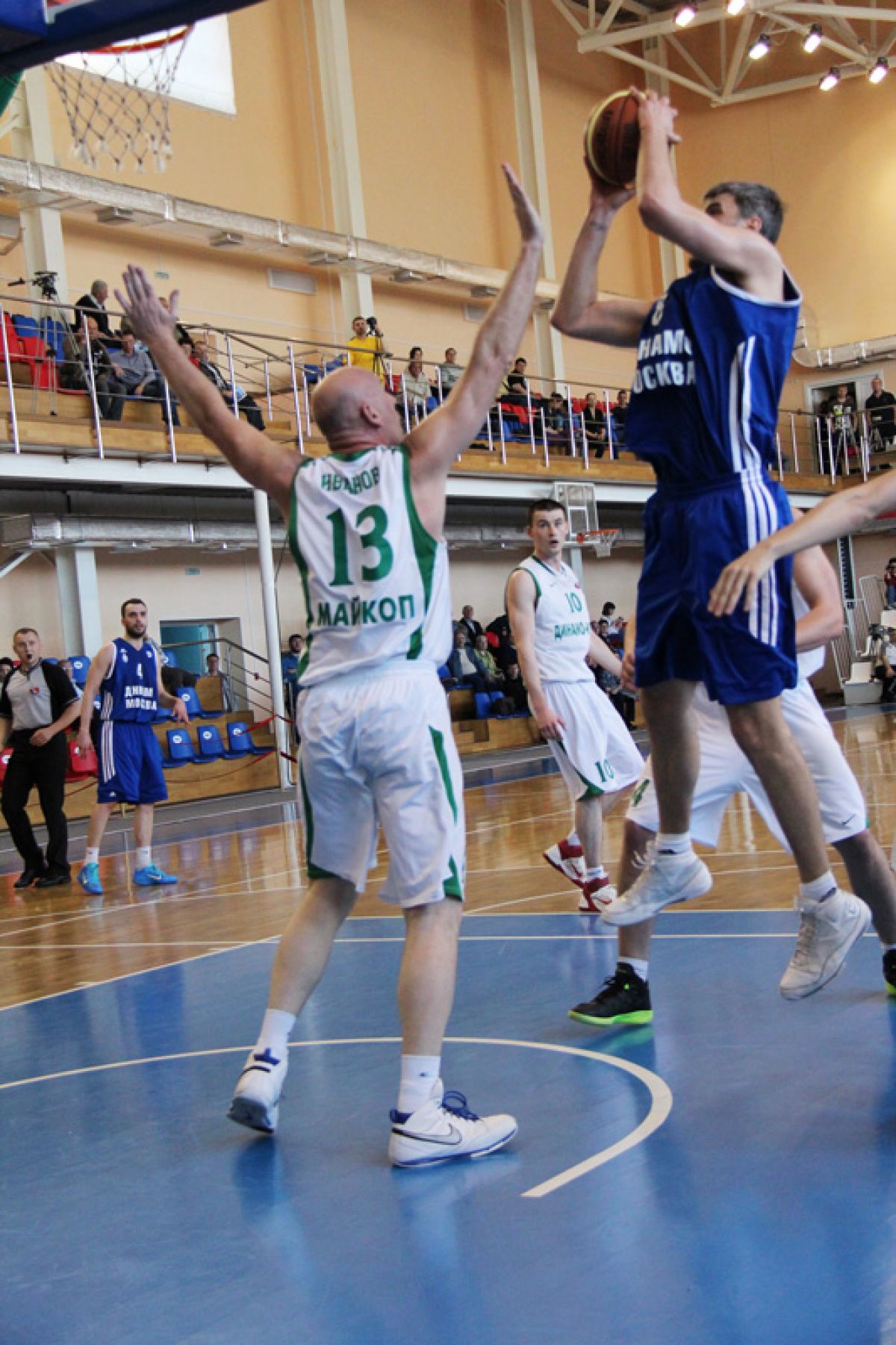 Главная сенсация случилась в матче номер три. В динамовском дерби команда из Майкопа обыграла команду из Москвы - 76:68. Возможно, причиной вялой игры москвичей стала акклиматизация: они прилетели в Барнаул вчера поздним вечером и даже опоздали на тренировку. В составе майкопского «Динамо-МГТУ» невозможно не восхититься мужеством и спортивным долголетием Сергея Иванова - заслуженного мастера спорта, серебряного призёра чемпионата мира-1994. Сейчас ему 48 лет. В матче с московским «Динамо» он набрал 10 очков и сделал 8 подборов. Конечно, скоростных качеств Сергею Васильевичу не хватает, но за счёт богатейшего опыта он с лёгкостью отыгрывает эту фору у молодых соперников.