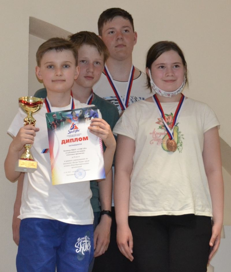 Третье место в общем зачете заняли школьники из барнаульской СОШ № 128. На первых двух досках хорошо провели турнир Андрей Осадчий и Миша Горлов. Чуть меньше вклад в общий успех от Кости Петухова и Насти Карбышевой. Но в целом барнаульцы набрали те же 18 очков, что и мамонтовцы. Но уступили соперникам по личной встрече и командным очкам. Тем не менее, для 128-й школы третье место - большой успех.