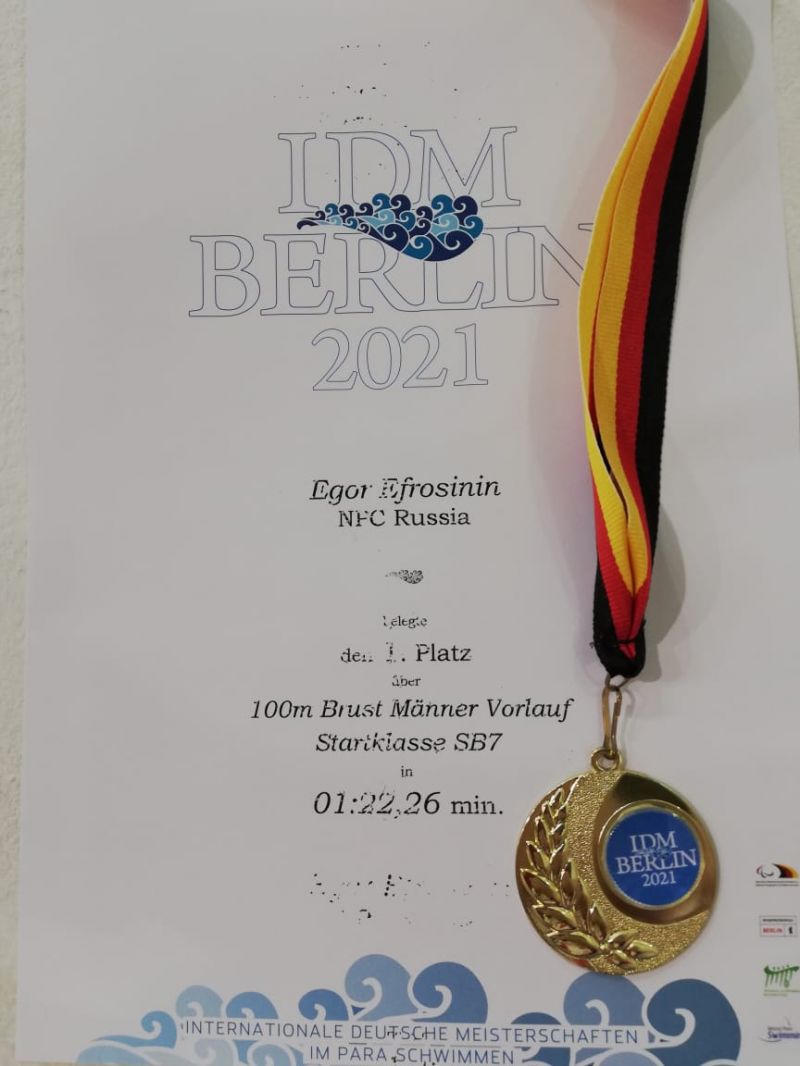 Егор Ефросинин выиграл 100 метров брассом на этапе Кубка мира по плаванию среди спортсменов с ПОДА