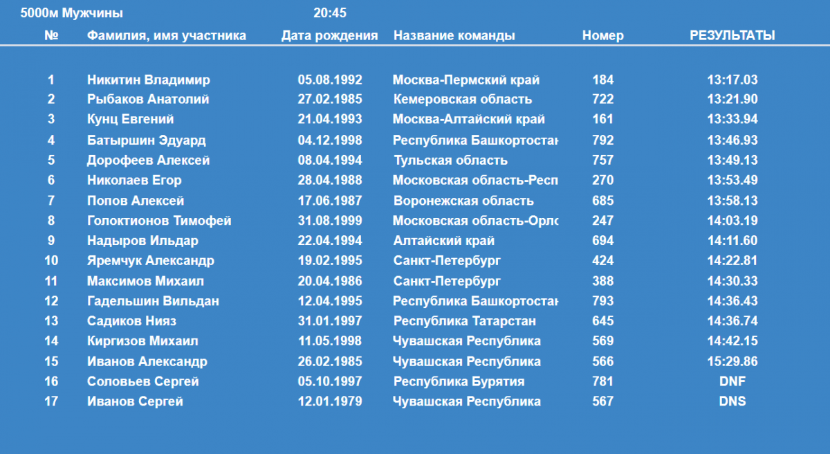 Еще один представитель Алтайского края Ильдар Надыров показал в забеге девятый результат (14:11.60)