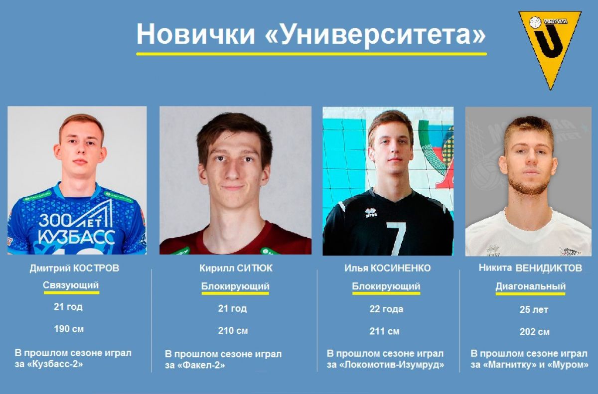 Состав «Университета» в сезоне 2021/2022 пополнили четыре игрока. На каждого мы собрали небольшое досье и вместе с главным тренером Иваном Воронковым составили характеристику.
