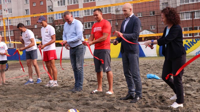 Ленточку под аплодисменты детей и многочисленных друзей перерезали организаторы и главные партнеры проекта «ВолейДвор».