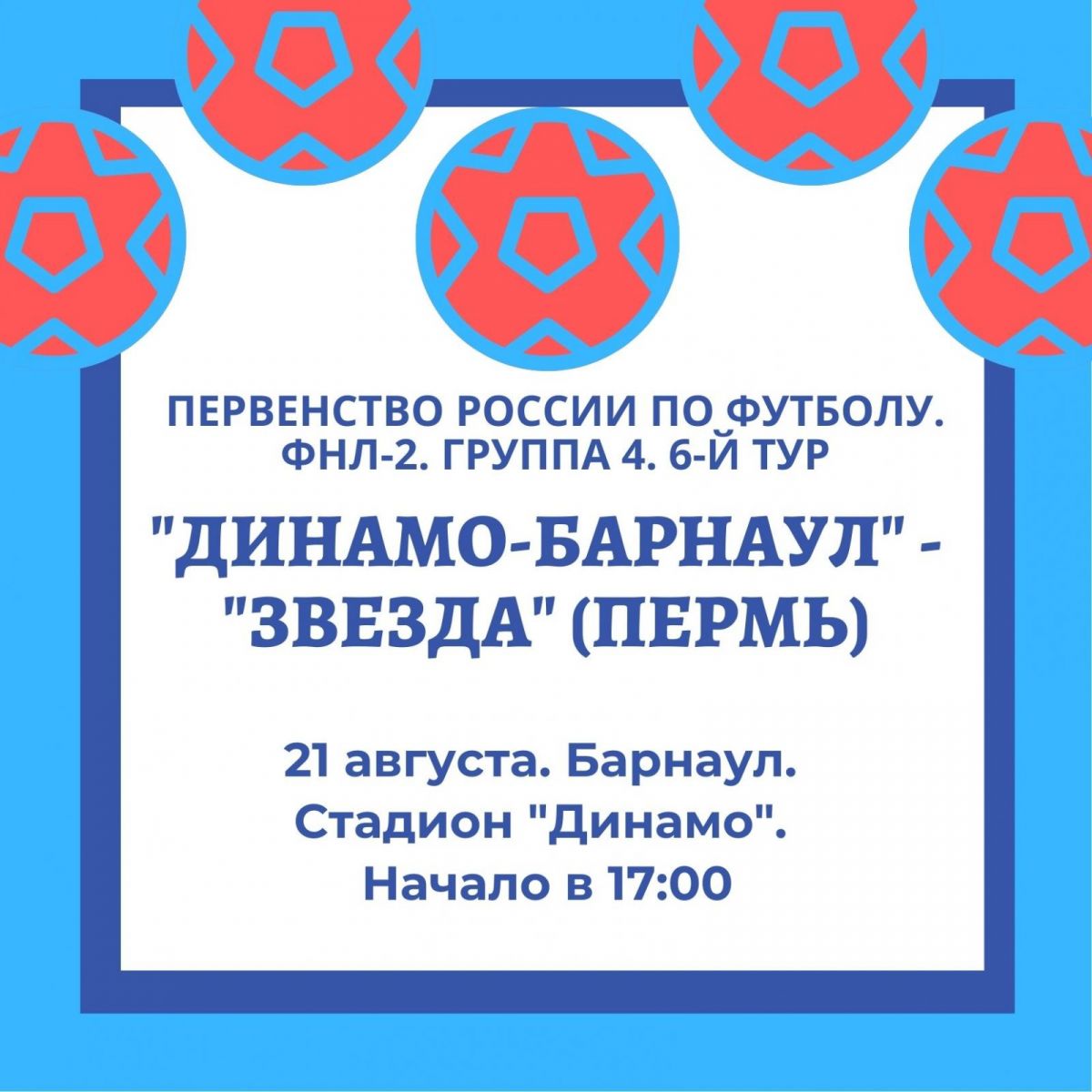В очередном матче первенства России по футболу среди команд второго дивизиона ФНЛ в Группе 4 барнаульское «Динамо» примет на своем поле «Звезду» из Перми.