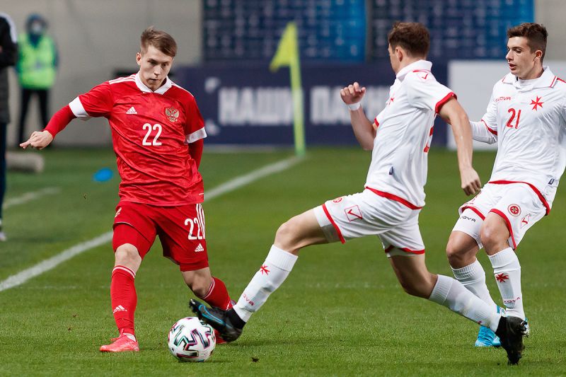 Кирилл Боженов забил первый гол в составе молодежной сборной. Россия разгромила Мальту в отборе Евро-2023