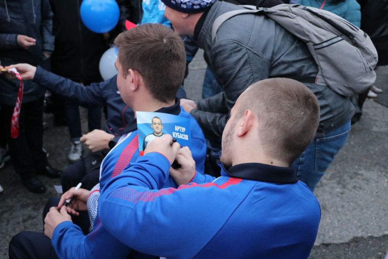 В зале прилёта паралимпийцев встречали родственники, болельщики, спортивное руководство края, учащиеся Алтайского училища олимпийского резерва, спортсмены краевой СШОР по плаванию «Обь» и другие паралимпийцы, вернувшиеся на малую родину ещё 5 сентября - Артур Кубасов, Юрий Лучкин, Егор Шаров, лидер-гид Александра Костина Юрий Клопцов и заслуженный тренер России по лёгкой атлетике Сергей Мануйлов.