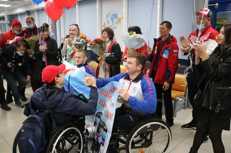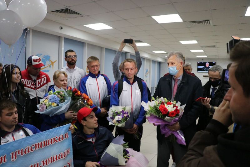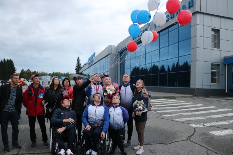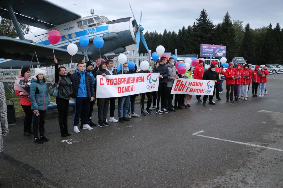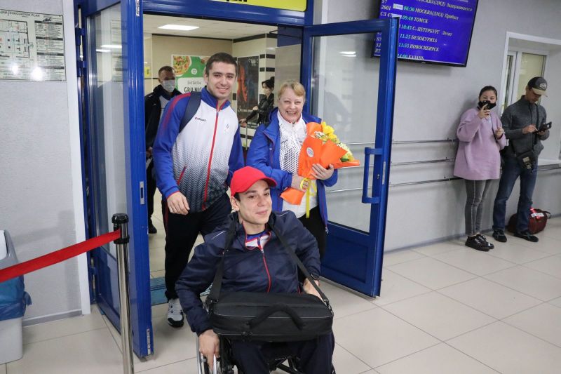 В аэропорт Барнаула прибыли трехкратный чемпион и двукратный бронзовый призёр по плаванию на Паралимпийских играх в Токио Роман Жданов, серебряный призёр в этом виде спорта Егор Ефросинин и бронзовый призёр легкоатлетических соревнований Александр Костин. Вместе со спортсменами сошла с трапа заслуженный тренер России Елена Соколова - соавтор паралимпийского успеха наших пловцов из Бийска.