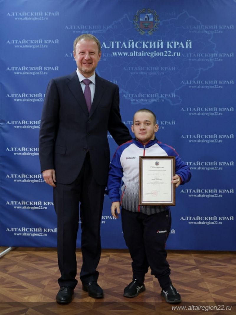 Почетными грамотами Правительства Алтайского края награждены заслуженный мастер спорта России по плаванию (ПОДА), серебряный призер на дистанции 100 метров брассом на Паралимпийских играх «Токио-2020» Егор Ефросинин; заслуженный мастер спорта России по легкой атлетике (спорт слепых), бронзовый призер на дистанции 5000 метров на Паралимпийских играх «Токио-2020» Александр Костин; мастер спорта России по легкой атлетике, спортсмен-ведущий Александра Костина на Паралимпийских играх «Токио-2020» Юрий Клопцов.
