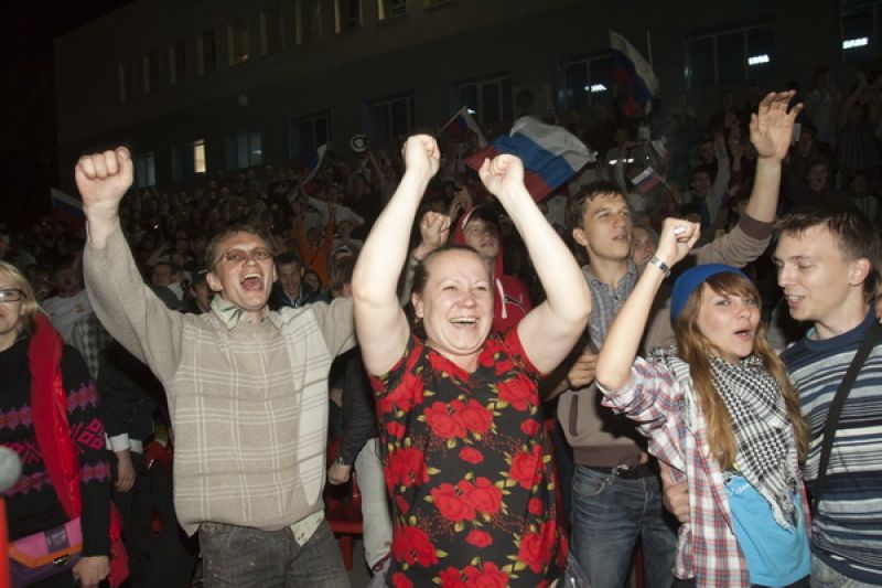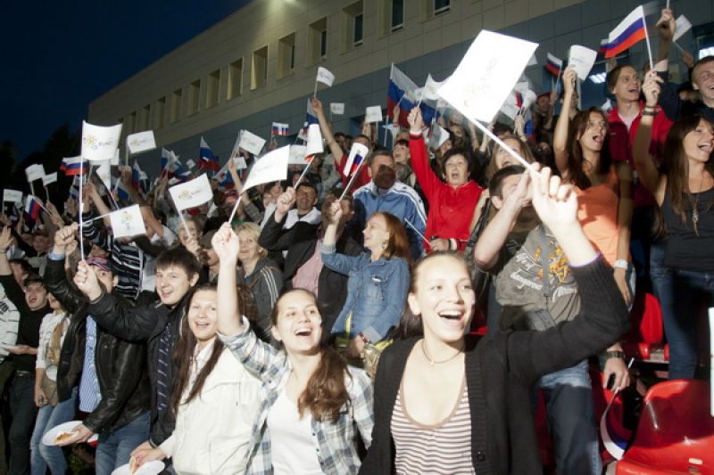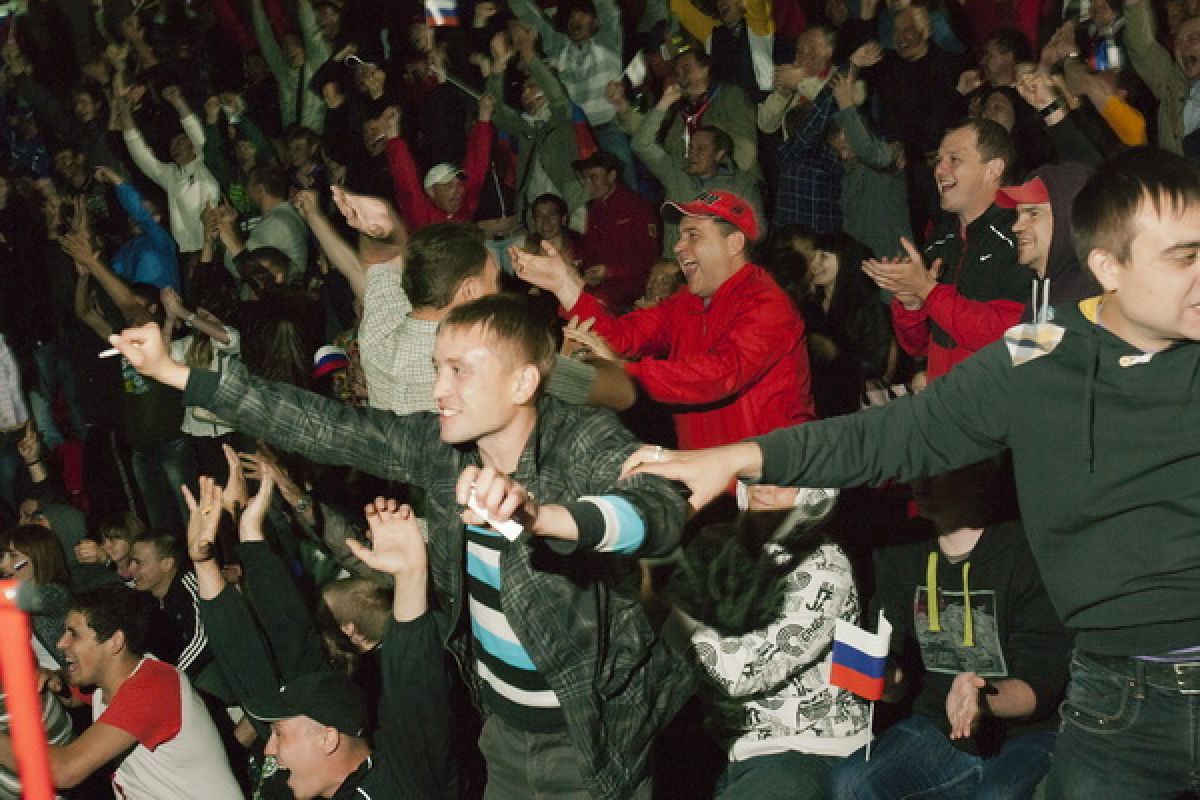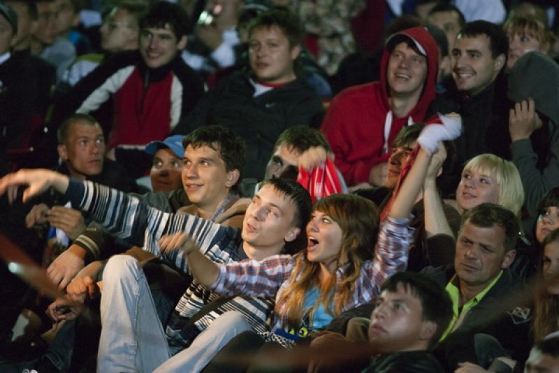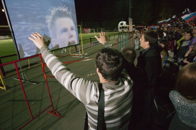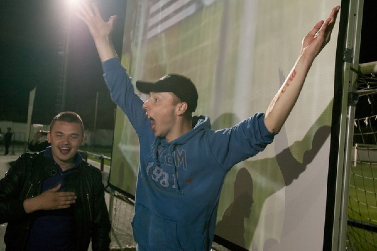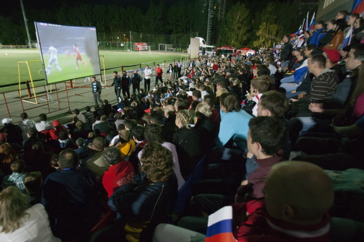 Перед трибунами стадиона были установлены три экрана высотой 5 метров. Футбольные болельщики начали собираться за несколько часов до начала прямой трансляции матча Россия - Чехия. Можно уверенно сказать, что на «фанзоне» был аншлаг: зрители, которым не хватило мест на трибуне, расселись на асфальте напротив экранов. Для гостей спортивного праздника были организованы конкурсы, викторины, выступления творческих коллективов города, болельщики репетировали речёвки, «волны», благодаря прямой телевизионной трансляции следили за событиями на чемпионате Европы по футболу. Из намеченного организаторами не удалось только провести телемост по скайпу со стадионом в польском Вроцлаве - качество «картинки» было очень низким.