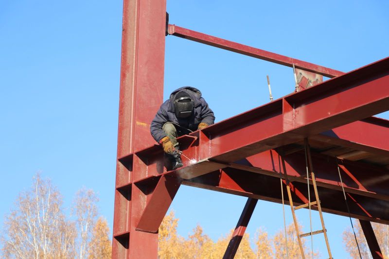 Продолжается строительство ФОКа на улице Юрина в Барнауле. Дело дошло до каркаса