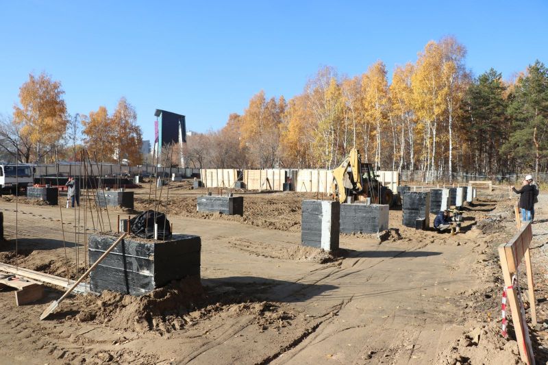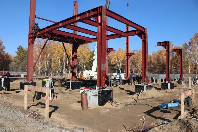 По словам руководителя отдела капитального строительства ООО «НовосибирскМонтажНаладка» Эдуарда Маркина, ответственного за стройку, на данный момент завершаются работы по обратной засыпке и уплотнению грунта, продолжается устройство монолитных цокольных балок, начаты работы по возведению основного каркаса здания.