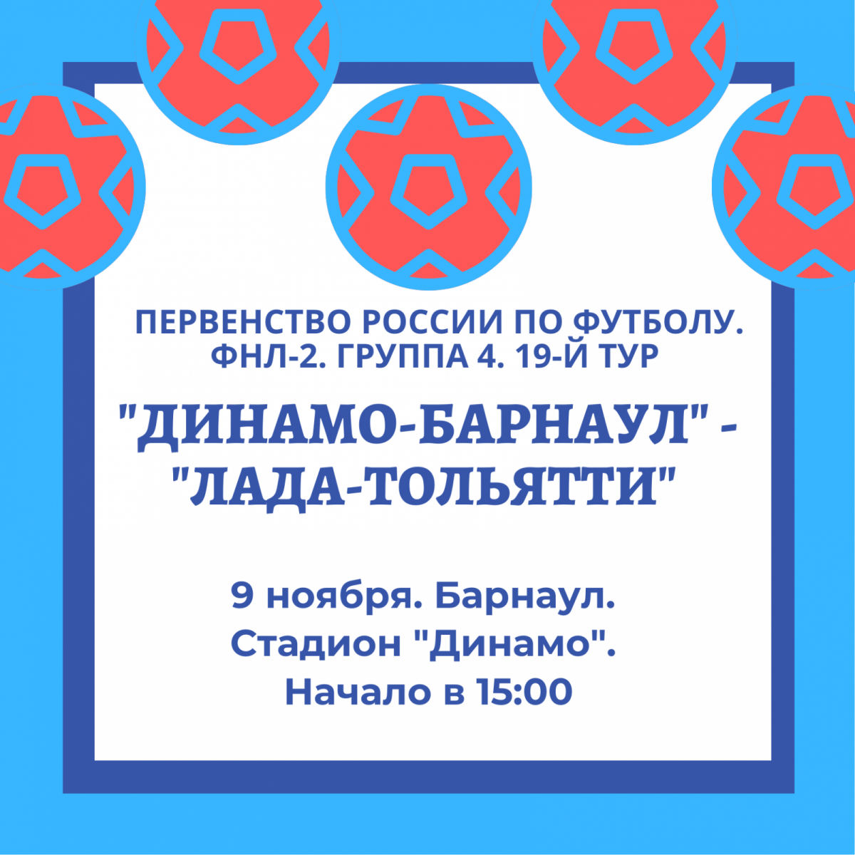 Барнаульское «Динамо» завершает футбольный сезон-2021 домашним матчем против «Лады» из Тольятти в рамках 19-го тура первенства России по футболу среди команд второго дивизиона ФНЛ.