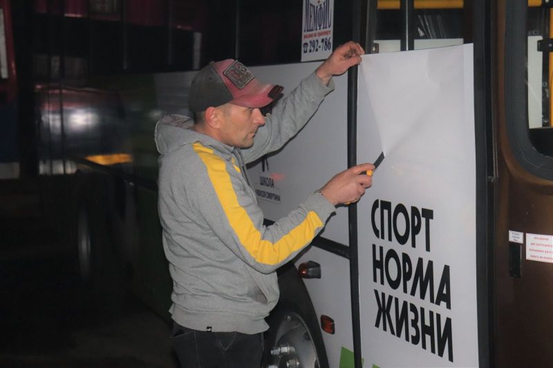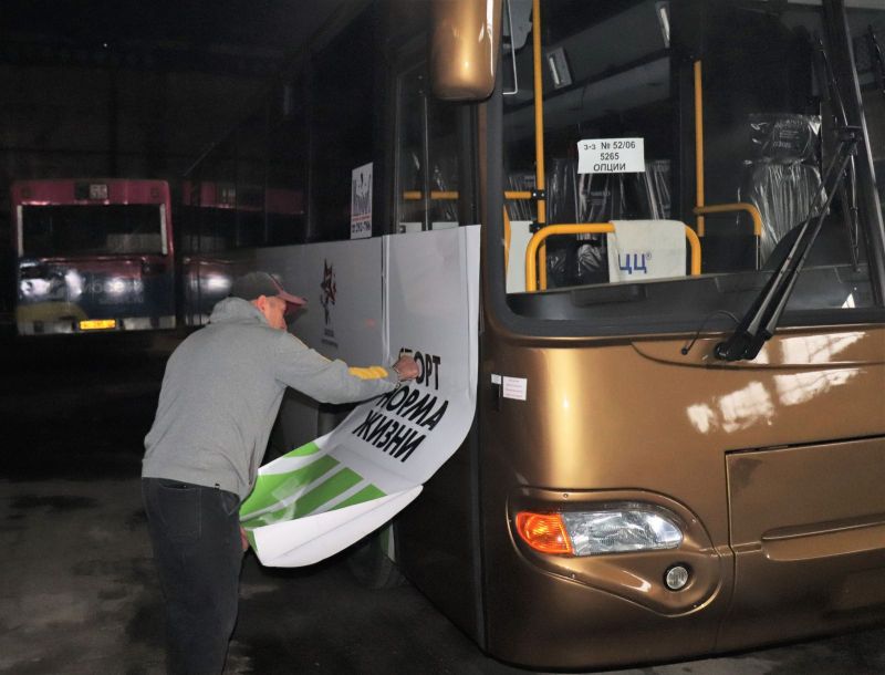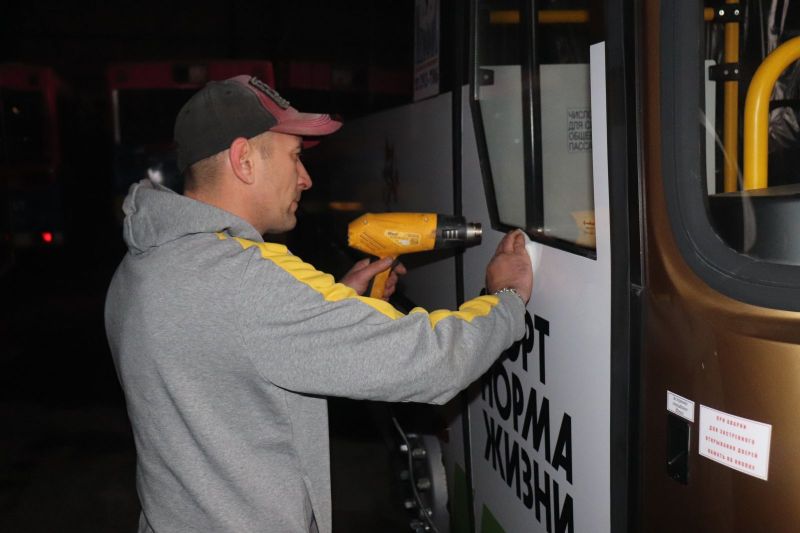 Чтобы забрендировать один автобус, монтажнику Евгению Степанову понадобилось около семи часов.