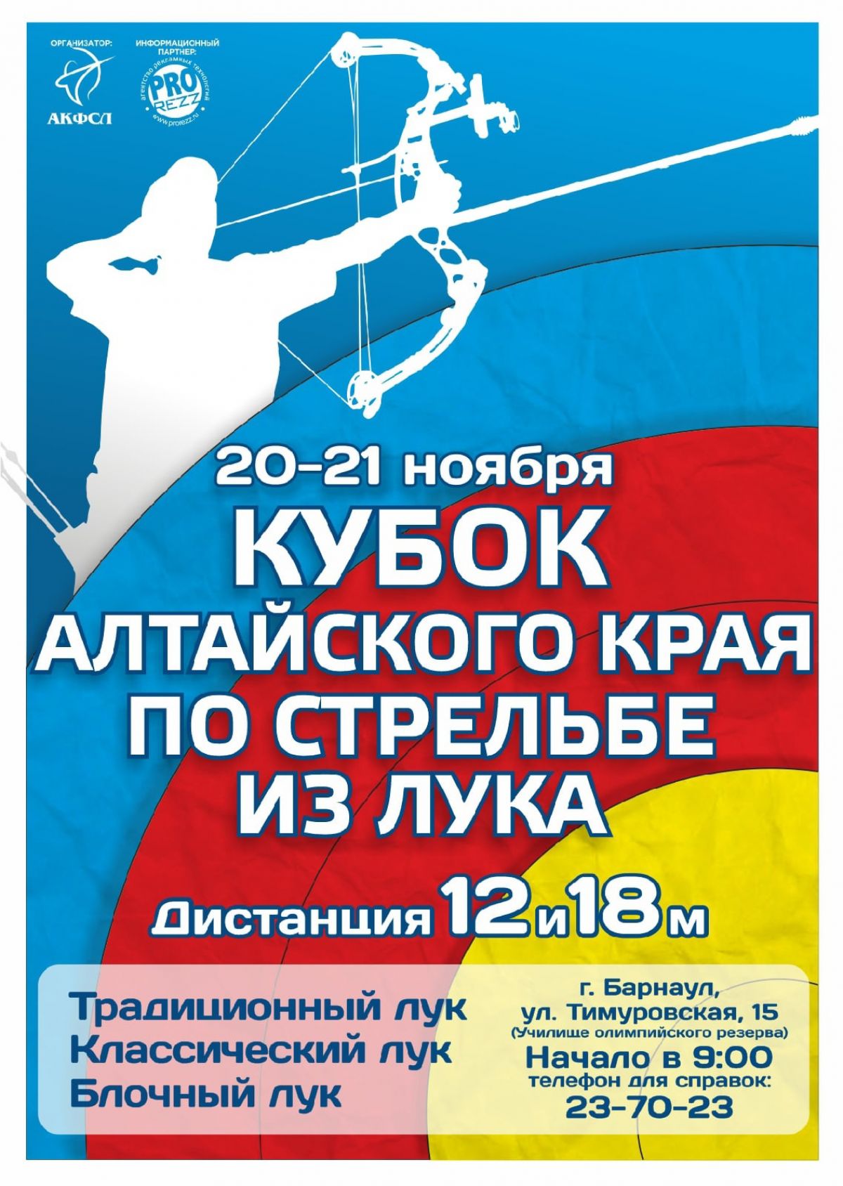 По всём вопросам обращайтесь к Алексею Дряневу, руководителю краевой федерации стрельбы из лука. Телефон 8 909 502 3131.