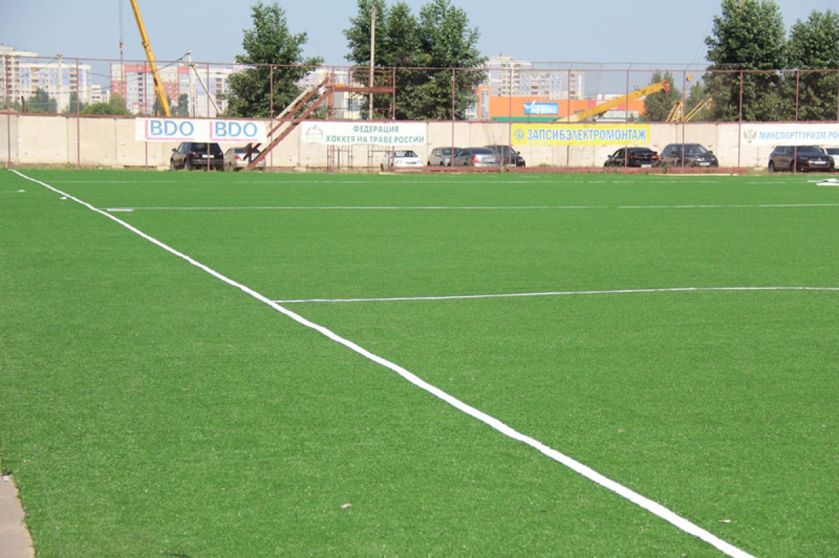 После них за работу возьмутся уже наши специалисты: директор по развитию СК «Коммунальщик» Сергей Метелёв привёз из Новосибирска первые 30 тонн специального кварцевого песка, которым надо засыпать ковёр. В соответствии с технологией укладки, песка должно быть 100−150 тонн - столько, чтобы на поверхности ковра свободными оставались лишь 20% длины искусственных «травинок».