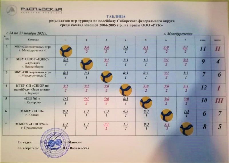 В Междуреченске 24−27 ноября прошёл турнир Сибирского федерального округа среди команд юношей 2004−2005 г. р. на призы ООО «РУК».
