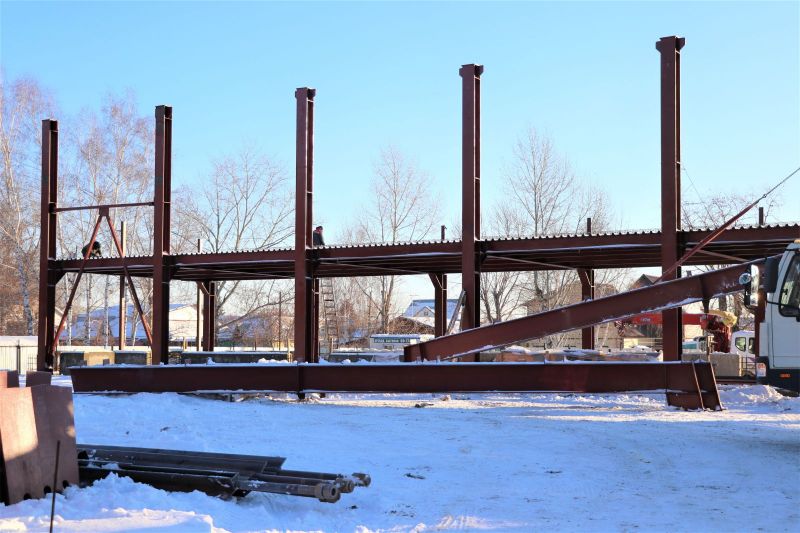 Продолжается строительство физкультурно-оздоровительного комплекса на стадионе «Лабиринт». По словам руководителя отдела капитального строительства ООО «НовосибирскМонтажНаладка» Эдуарда Маркина, ответственного за стройку, на данный момент ведутся работы по монтажу металлоконструкции основного здания, наружных сетей газопровода, завершаются работы по установке цокольных балок. Закупают плиты перекрытия, необходимый материал для внутренней сети канализации и покрытия нулевой отметки.