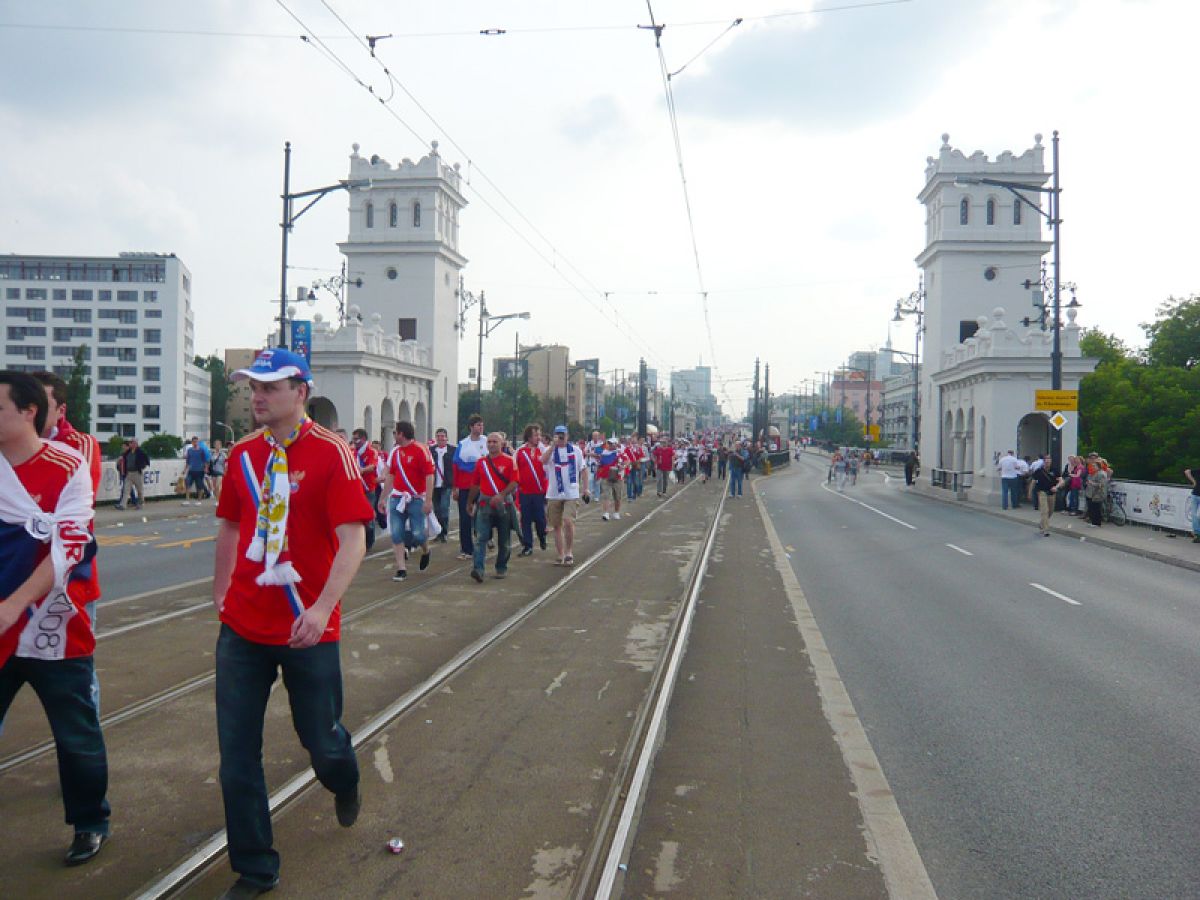 - Организаторы поездки сообщили нам, что 12 июня, в День России, все российские болельщики маршем пройдут по мосту через Вислу к стадиону. Мы двинулись от гостиницы «Громада». Пели под баян русские песни, кричали: «Россия, вперёд!», «Россия победит!». Многие вышли на улицу в бескозырках, тельниках, казацких папахах. Одна девчонка Снегурочкой нарядилась. Мы с сыном несли российские флаги. Я почувствовал неладное, когда вышли на середину моста. Навстречу стали попадаться молодые поляки с повязками, закрывающими лица, мрачные парни в футболках с государственной символикой Польши. Они бросали в толпу разрывающиеся петарды, бутылки, камни. Скандировали: «Русские - курвы!». Задние ряды наших же болельщиков стали на нас давить, и мы побежали вперёд. Надо отдать должное польской полиции: вмешавшись, она оттеснила провокаторов. На мосту я никаких драк не видел. А вот когда мы пошли по нему уже после матча Россия - Польша, тут потасовки и вспыхнули. Особенно там, где были узкие места. Нападали поляки в основном сзади. Валили людей наземь и толпой избивали. Сильно досталось болельщикам из Новосибирска. Одному рёбра поломали, другому огромный синяк под глазом и на бедре поставили. Но когда молодчики натыкались на организованное сопротивление, сразу отступали.