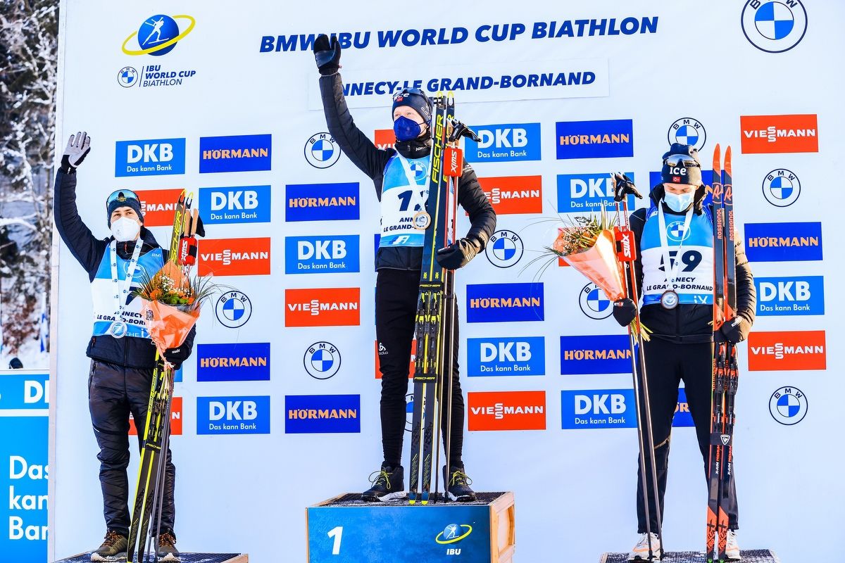 Правят общим зачетом пока что шведы и французы, и последние столкнулись сегодня с приличным давлением. Для нас важнее тот факт, что Латыпов сегодняшним серебром забрасывает себя сразу на позицию в «тотале» и в зачете Малого Хрустального глобуса по спринту. Выступать за зрителями — уже практически забытый биатлонистами навык, но французским властям удалось задобрить местное врачебное сообщество, и в итоге на трибунах 100-процентная загрузка. Шумовая поддержка была как в прежние, доковидные времена, и на эмоциональном спокойствии это сказалось. Эмильен Жаклен зашел на круг после первого же рубежа, Симон Дестье со страхом работал на втором, но даже долгая прицелка не спасла его от промаха последним выстрелом. Минимум по одному промаху у каждого в команде хозяев, поэтому домашние просторы пока что Франции не помогают.