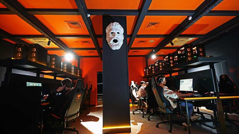Новый игровой зал разделен на зоны по интересам. Основное пространство - ряды мощных компьютеров, расположенных недалеко друг от друга. Здесь тренируется клубная киберспортивная команда, места бронируют большие компании геймеров. Также есть несколько комнат с консолями. Создана отдельная зона с пятью машинами, интерактивным экраном и доской, на которых можно разобрать тактики или анализировать прошедшие игры - это будет полезно для сыгранных киберспортсменов во время соревнований.