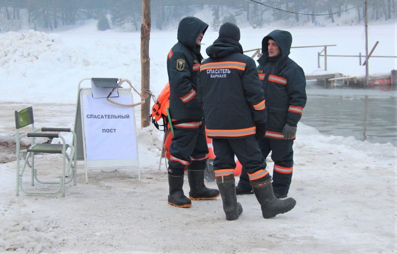 С Божьей помощью. В Крещение вместе с местными моржами окунулся в ледяную купель министр спорта Алтайского края