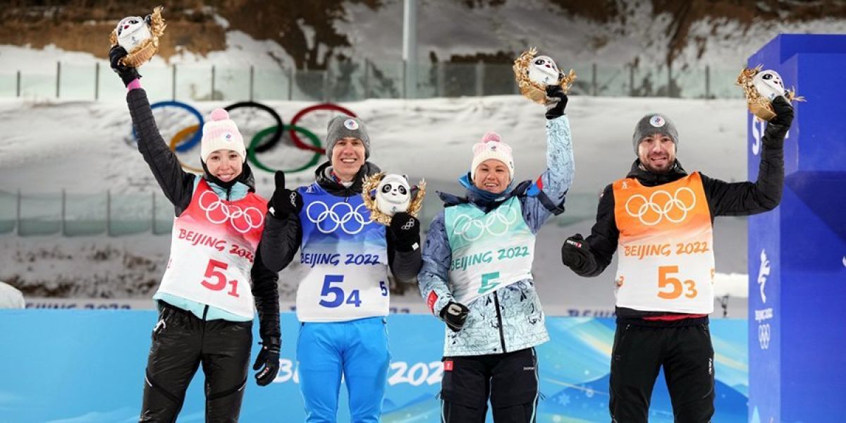 1. Норвегия (Марта Улсбю Ройселанн, Тириль Экхофф, Тарей Бё, Йоханнес Бё) .- 1:06.45,6 (3 штрафных круга + 13 дополнительных патронов). 2. Франция (Анаис Шевалье-Буше, Жюлия Симон, Эмильен Жаклин, Кентен Фийон Майе) - отставание 0,9 (3+11). 3. ОКР (Ульяна Нигматуллина, Кристина Резцова, Александр Логинов, Эдуард Латыпов) - + 1,5 (1+13).