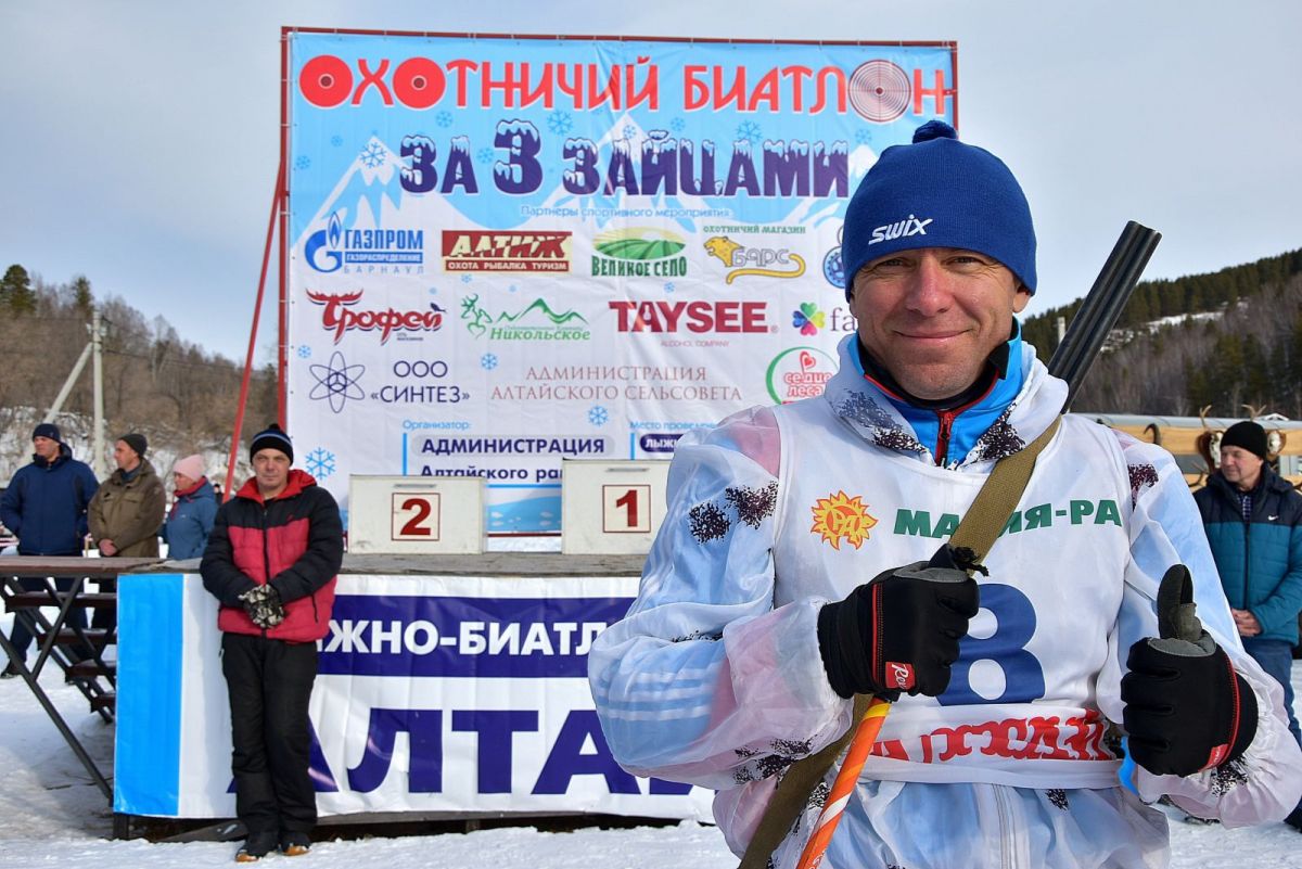 А самые необычные состязания прошли 23 февраля в Алтайском районе. В райцентре Алтайское состоялся открытый чемпионат по охотничьему биатлону «За тремя зайцами»!