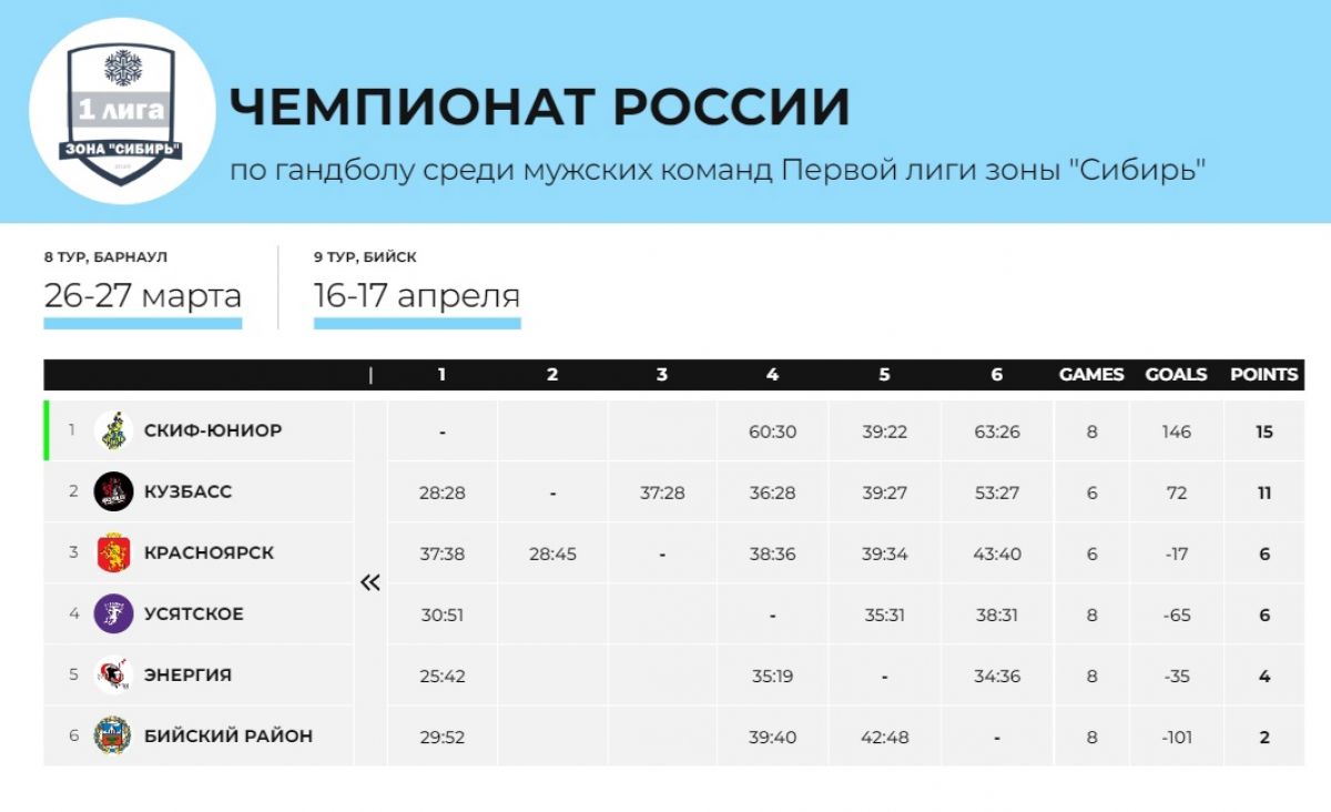 В Новокузнецке 26−27 февраля прошёл седьмой тур в сибирской зоне первой лиги чемпионата страны. «Бийский район» неожиданно победил с минимальным счётом барнаульскую «Энергию» и набрал первые очки в сезоне. Барнаульцы «отыгрались» на другом представителе этого же алтайского муниципалитета - команде «Усятское» из одноимённого села.
