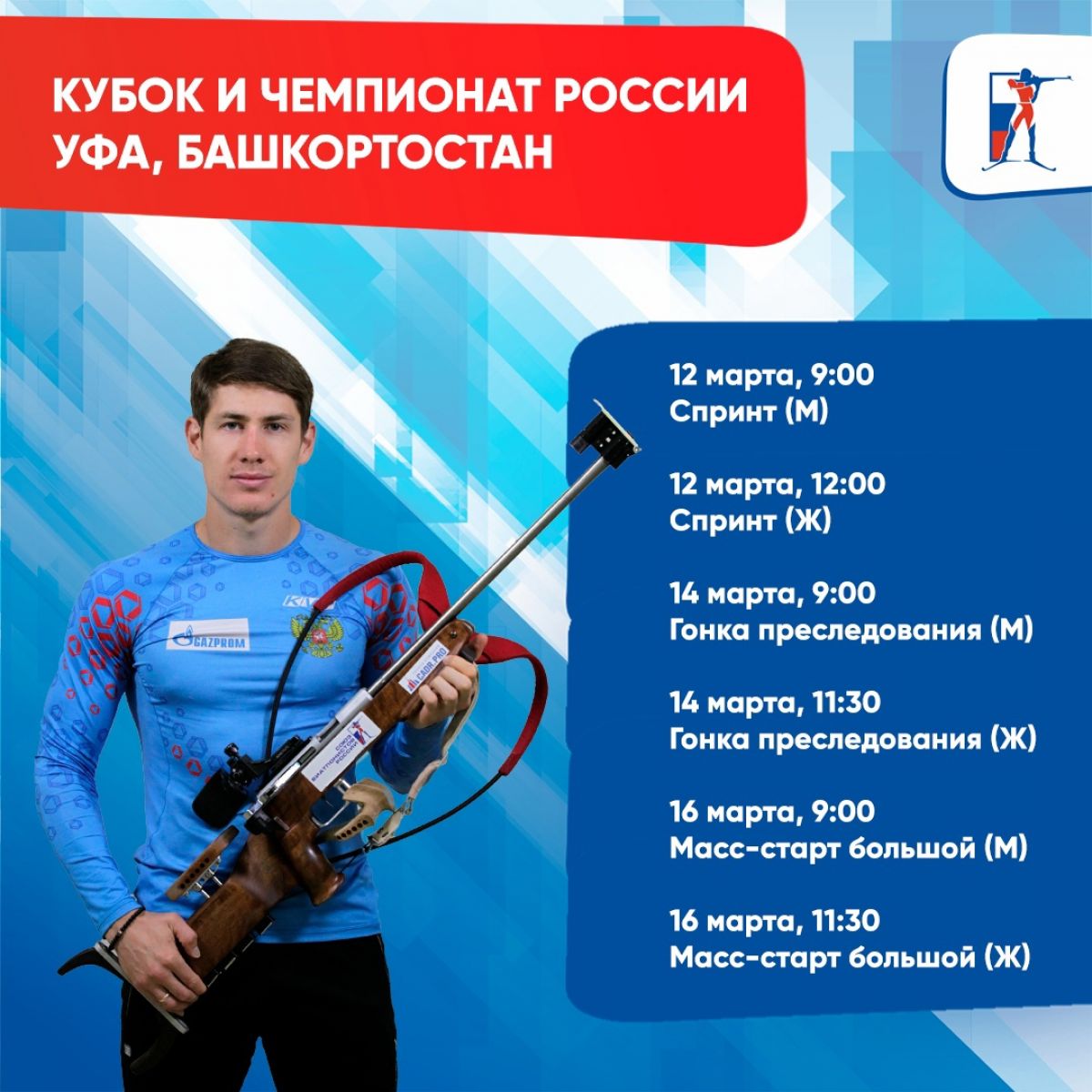 С 12 по 16 марта в Уфе пройдёт финальный этап Кубка России и первые гонки чемпионата России, в которых примут участие все сильнейшие биатлонисты страны и сборная Белоруссии. Телеканал «Матч ТВ» будет транслировать соревнования в прямом эфире.