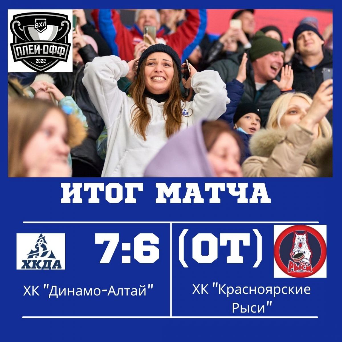 Этот безумный, безумный, безумный хоккей! Во втором матче ½ финала Кубка Федерации ХК «Динамо-Алтай» отыгрался с 0:6 и выиграл у «Красноярских Рысей» в овертайме - 7:6!