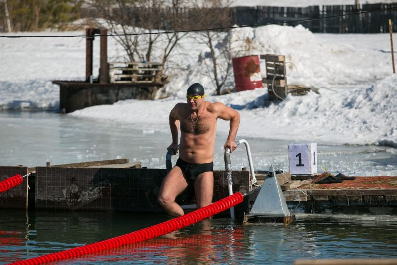 Температура воздуха была минус 4 градуса, а воды - плюс 0,5 градуса.