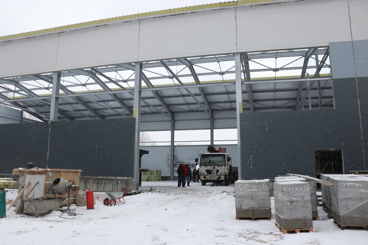 Но это не значит, что мы ждём и не ведём строительство. Примерно 80% материалов для строительных работ мы закупили и привезли. Ключевая позиция - металл. Мы на настоящий момент начали изготавливать металлокаркас, недели через две приступим к заливке фундамента с арматурой.