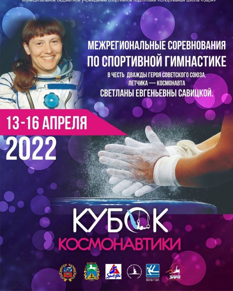 13−16 апреля в Бийске в спортивной школе «Заря» проходили межрегиональные соревнования по спортивной гимнастике среди юношей «Кубок Космонавтики» в честь дважды Героя Советского Союза, летчика-космонавта Светланы Савицкой.