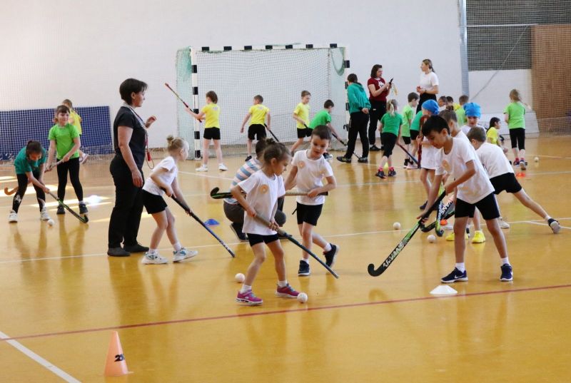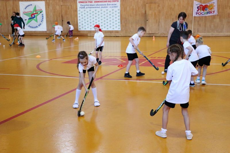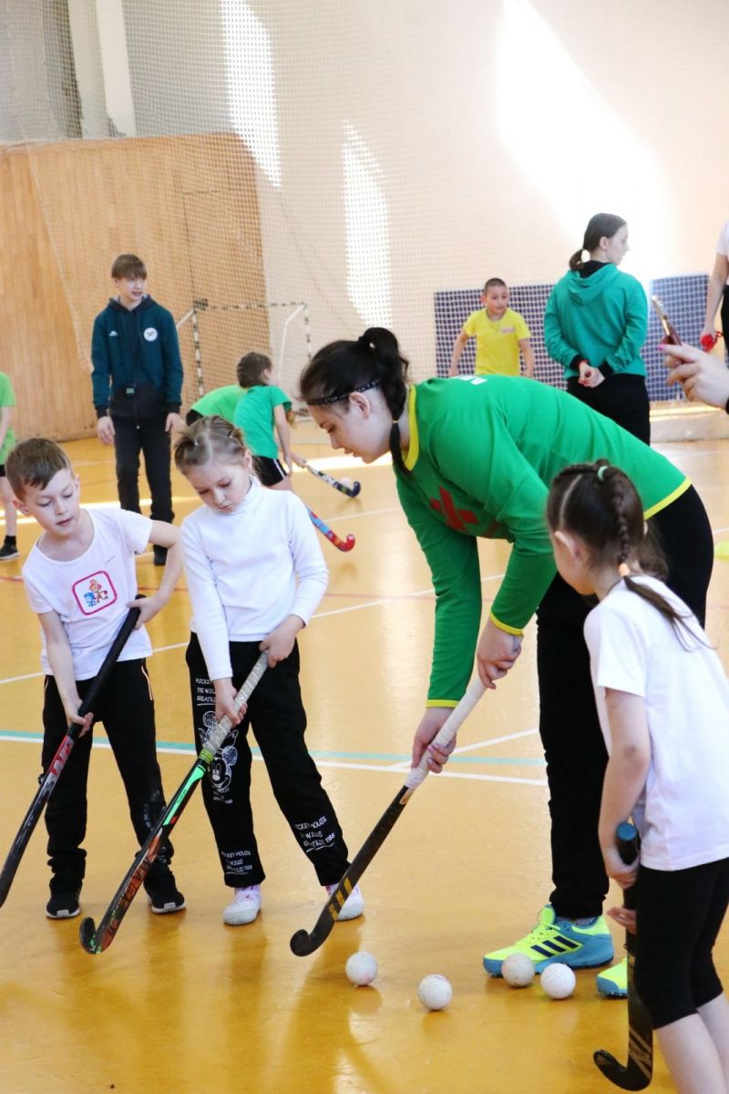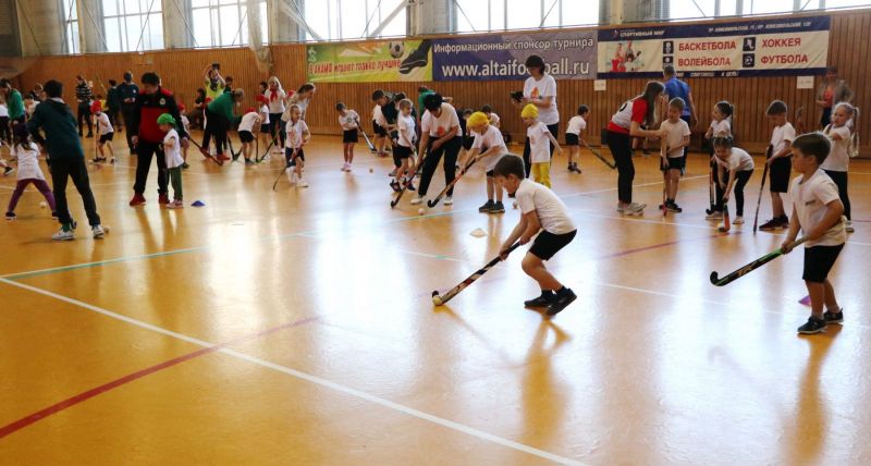 После эстафет со скакалками тренеры и воспитанники спортивной школы по хоккею на траве «Юность Алтая», а также игроки команды мастеров «Коммунальщик» провели с детьми мастер-класс по своему виду спорта.