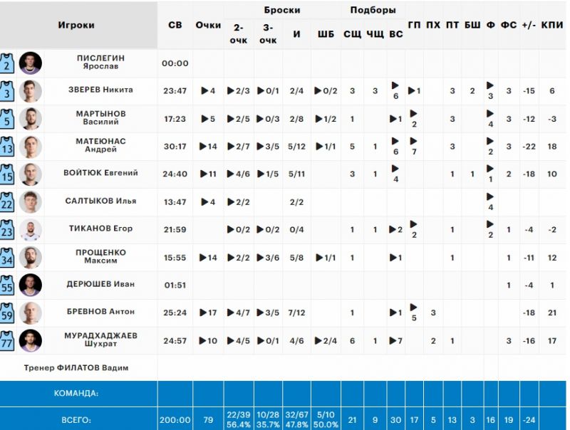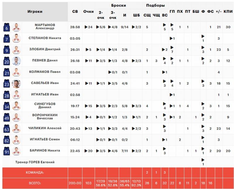 Отметим и Алексея Чиликина, который реализовал абсолютно все броски: один со средней дистанции, два штрафных и три трехочковых (13 очков в сумме).