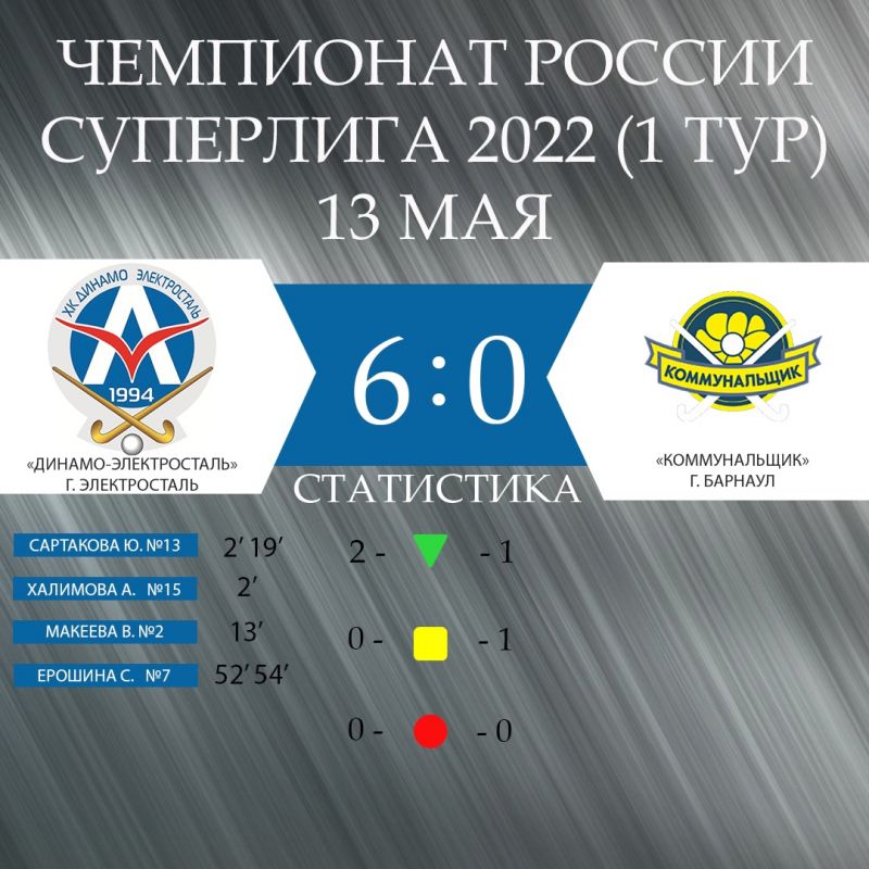 13−14 мая алтайские хоккеистки в стартовом туре женской суперлиги-2022 играли на выезде против подмосковной команды «Динамо-Электросталь». Обе встречи выиграли хозяйки поля - чемпионки страны двух последних лет.