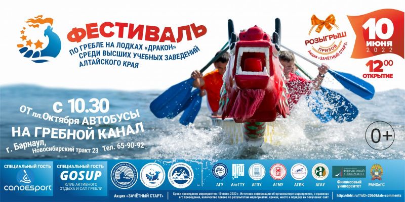 Студенческий фестиваль гребли на лодках «Дракон» - первое мероприятие региональной Студенческой лиги по гребле на лодках «Дракон» и сапбордах. Она была создана в марте 2022 года с целью популяризации спорта и здорового образа жизни среди студентов, развития гребли на спортивных лодках в Алтайском крае.