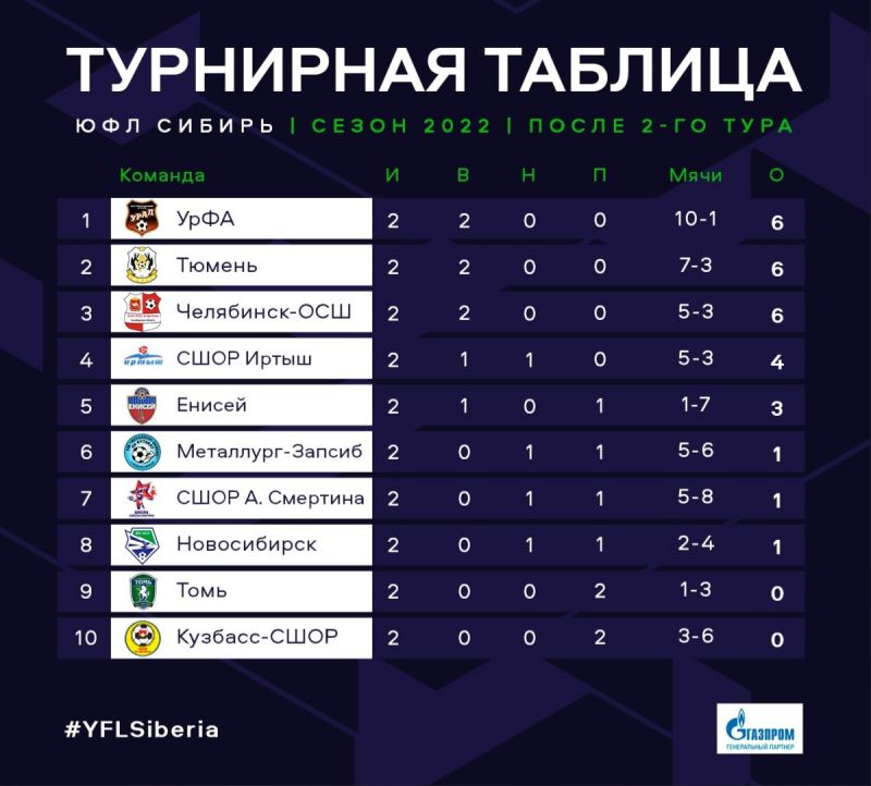 Напомним, ЮФЛ «Сибирь» - проект Российского футбольного союза, в котором участвую десять команд из десяти городов Сибирского и Уральского федеральных округов. В этом сезоне соревнуются юноши до 16 лет.