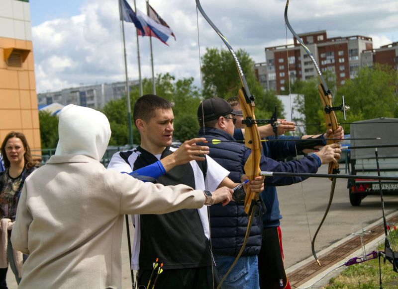 После торжественной части был дан старт спартакиаде. Команды соревновались в девяти видах спорта - стритболе, бадминтоне, гиревому спорту, футболе, настольному теннису, шахматах, петанке, перетягивании каната и дартсе. Кроме этого, Алтайская краевая федерация стрельбы из лука организовала на территории спорткомплекса свою площадку, и у всех желающих была возможность попробовать себя в этом виде спорта.