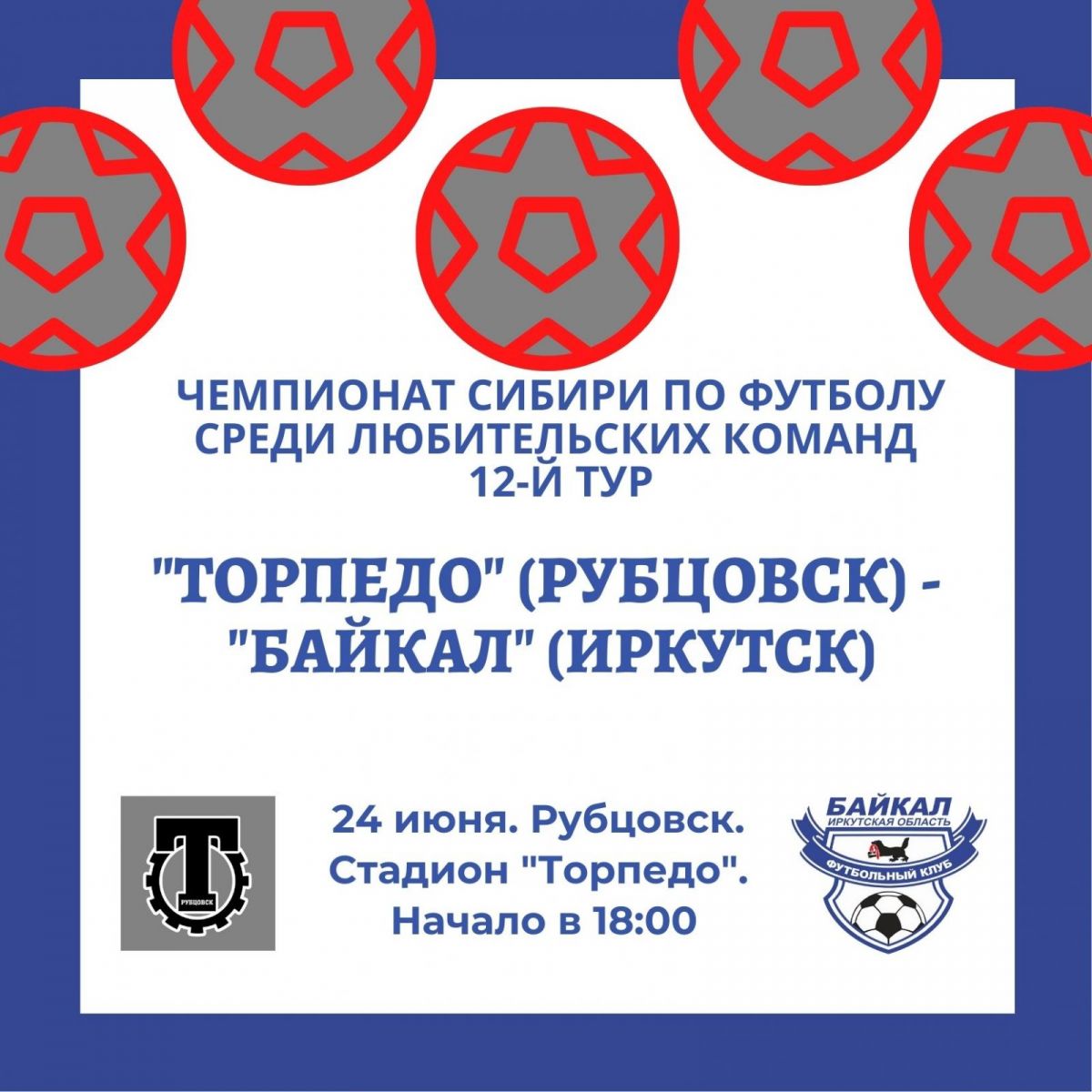 24 июня. Рубцовск. Стадион «Торпедо». Чемпионат Сибири среди ЛФК. 12-й тур. «Торпедо» - «Байкал» (Иркутск)