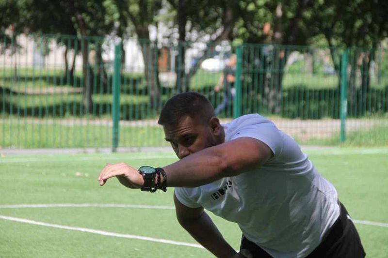 Олег Набока в проекте «Летний дворовый инструктор» участвует третий год. Началось всё в 2020-м, когда ему, персональному тренеру клуба «Вита-Спорт», предложили взяться за работу на площадке в парке «Изумрудный». Из-за пандемии клиентов в клубе было меньше, чем обычно, Олег согласился, интересно было попробовать, получится или нет. Получилось, да ещё настолько успешно, что в следующем году проводить уличные тренировки его позвали ещё и в Павловск. Ну, а нынешним летом добавилась третья площадка - на Потоке.